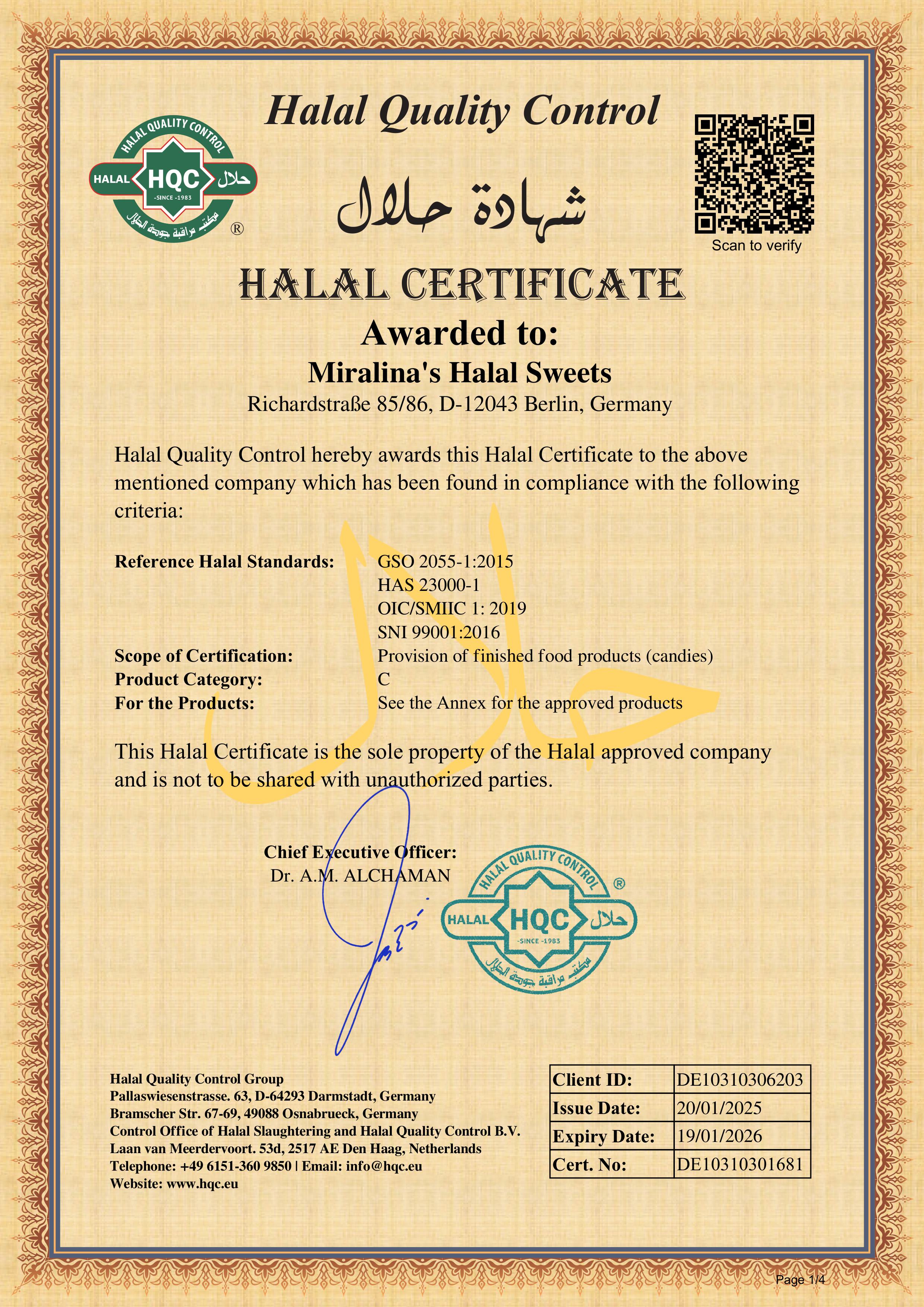 Zum Halal-Zertifikat von Miralina's Halal Sweets