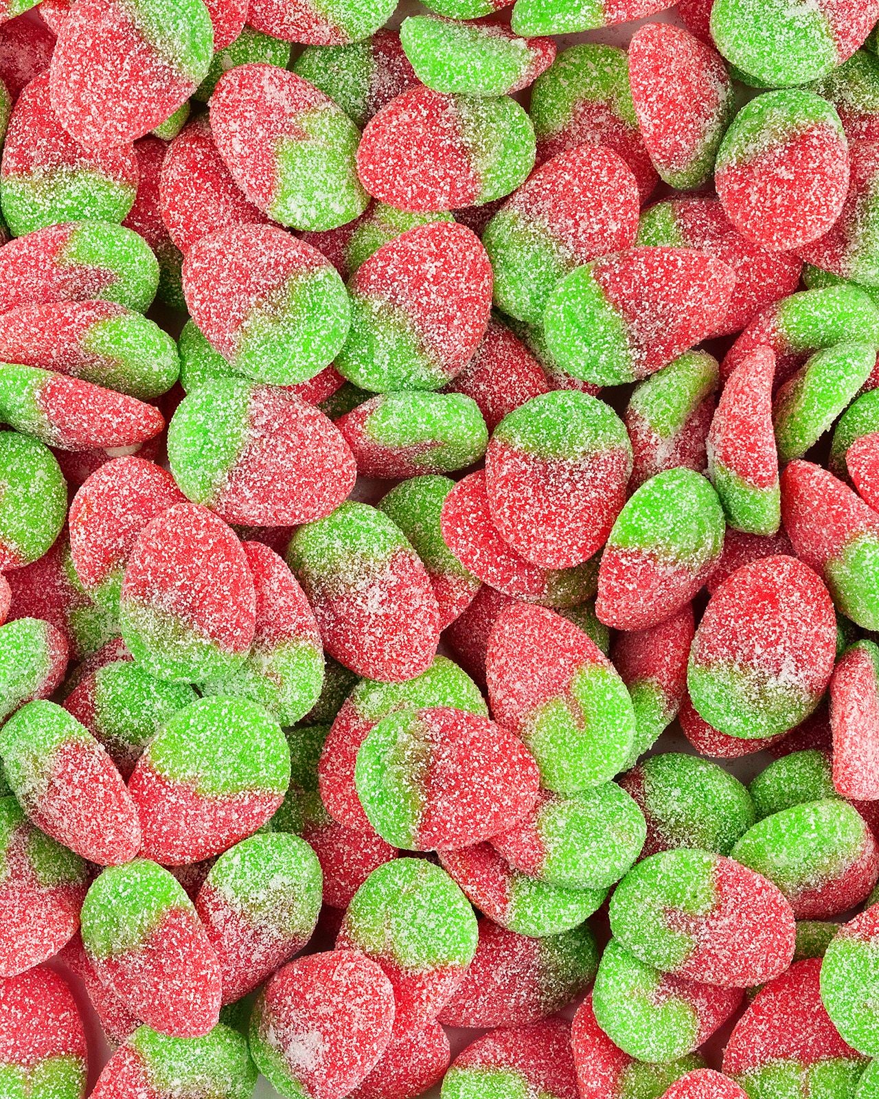 Diese Miralina Saure Erdbeeren sind köstliche Halal-Süßigkeiten mit intensivem Erdbeer-Geschmack und angenehm sauer,